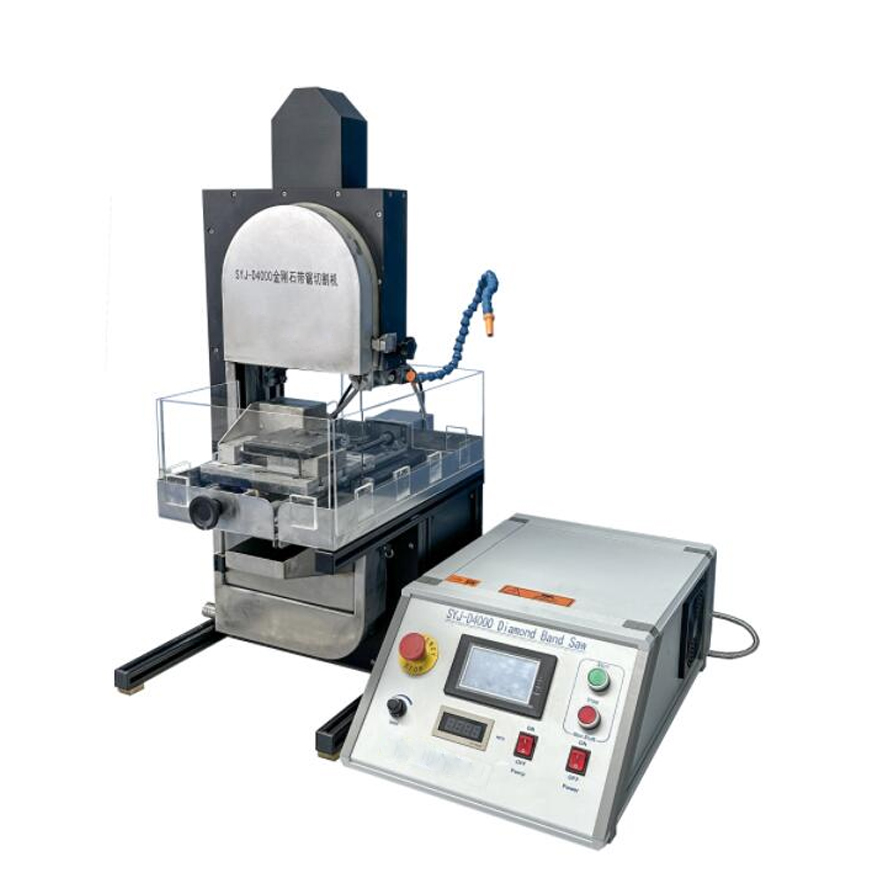 SYJ-D4000金刚石带锯切割机是一种小型的金刚石带锯切割机,其特点是:切割弧度小、操作简便、具有手动切割和自动切割两种切割方式。本机适用于切割玻璃、陶瓷、玉石、大理石等非金属材料,也可用于生物医学材料的切割取样,例如骨科、牙科、躯体及器官软硬组织的联合切片或塑化薄片等。可进行直线、曲线等各种几何形状的切割。它是当前工艺美术、工艺制品制作实用的机具之一。